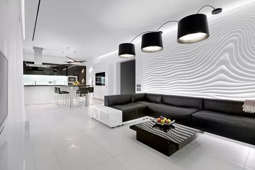 Для создания современного черно-белого интерьера выбирайте мебель с простыми линиями и минималистичным дизайном. Черные и белые аксессуары, такие как подушки, картины, и светильники, могут быть использованы для добавления контраста и завершения общего вида помещения.