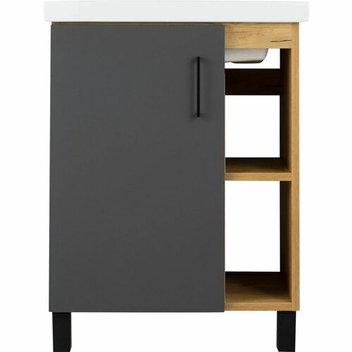 Тумба под раковину напольная лофт 60 см цвета дуб вотан - это стильное и практичное решение для вашей ванной комнаты. Эта модель сочетает в себе функциональность и эстетику, обеспечивая удобство использования и привлекательный внешний вид.