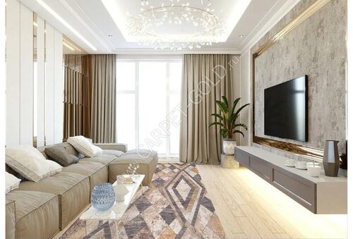 Прямоугольная форма мебели, ковров и декоративных элементов поможет создать четкие линии и гармоничный баланс в интерьере гостиной. Простые и сдержанные формы придают помещению современный вид и обеспечивают удобство использования.