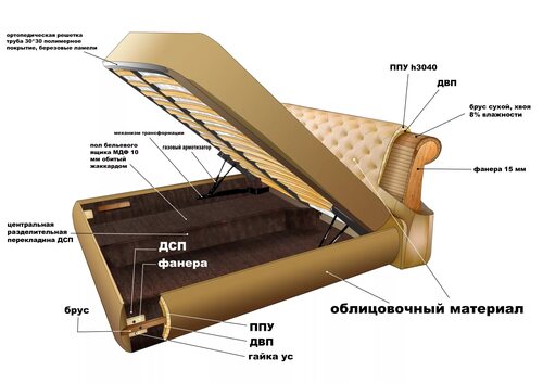 Чертеж кровати с подъемным механизмом 160х200 схема