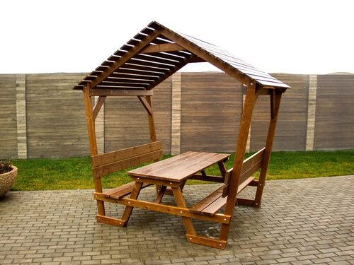 Стол уличный с навесом обладает прочной конструкцией, устойчивой к воздействию атмосферных явлений. Он может быть изготовлен из различных материалов, таких как дерево, металл или пластик, что позволяет выбрать оптимальный вариант в зависимости от ваших предпочтений и стиля обустройства участка.