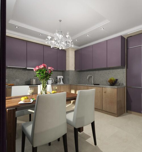 Серо-сиреневый цвет придает кухне изысканность и оригинальность. Он отлично сочетается с различными оттенками и материалами, что позволяет создавать уникальные интерьеры.