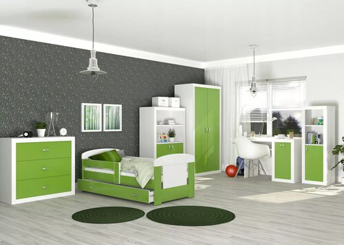 1. Современный стиль. Для детской комнаты с зеленой мебелью можно выбрать современный стиль. Яркая зеленая кровать или шкаф будут прекрасно сочетаться с белыми стенами и аксессуарами в ярких тонах.