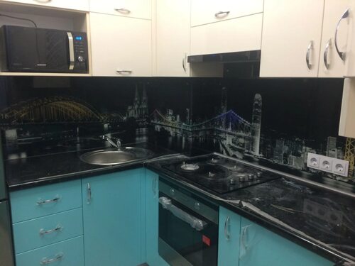 Бирюзовая кухня с черной столешницей - это смелое и стильное решение для современного интерьера. Яркий цвет бирюзы в сочетании с черной столешницей создает элегантный и утонченный облик кухни, придавая ей особый шарм и индивидуальность.