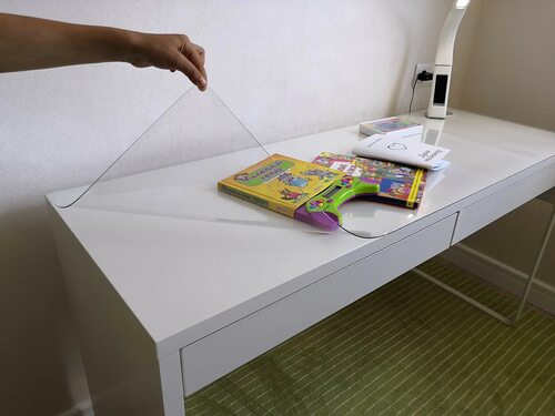Прозрачная защитная пленка на письменный стол обладает рядом преимуществ: