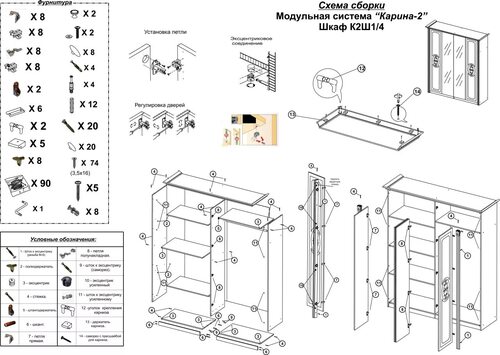 После сборки корпуса приступите к установке дверей и различных аксессуаров, включая полки, ящики и вешалки. Следуйте инструкции и используйте фотографии для правильной установки каждого элемента.