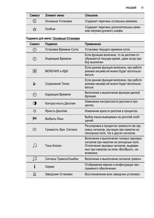 Духовка Электролюкс режимы значки