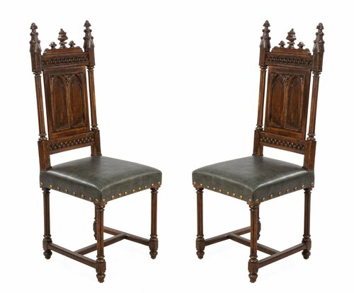 Стул в готическом стиле отличается выразительным декором, часто включающим в себя изогнутые линии, резные элементы и узоры. Квадратное сиденье добавляет этому стулю современный штрих, делая его универсальным для различных интерьеров.