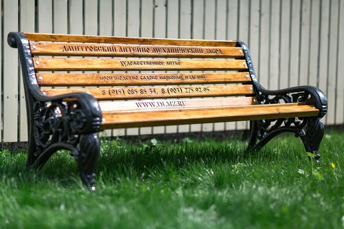 Фото 3: Скамейка с удобной спинкой и подлокотниками для комфортного отдыха.