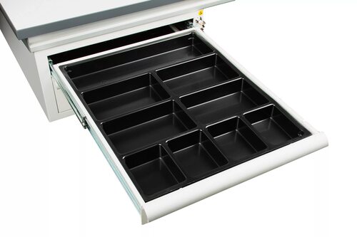 Медицинская вставка пластиковая в ящик тумбы обладает рядом особенностей, делающих ее незаменимым элементом оборудования медицинских помещений. Ее конструкция предусматривает удобное разделение внутреннего пространства, что позволяет эффективно организовать хранение различных предметов. Кроме того, пластиковая вставка легкая и прочная, что обеспечивает долгий срок службы и удобство в эксплуатации.