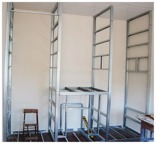 Для создания встроенного шкафа из профиля понадобятся следующие инструменты: дрель, отвертка, пила, уровень, измерительный инструмент и другие основные инструменты для работы с деревом и металлом.