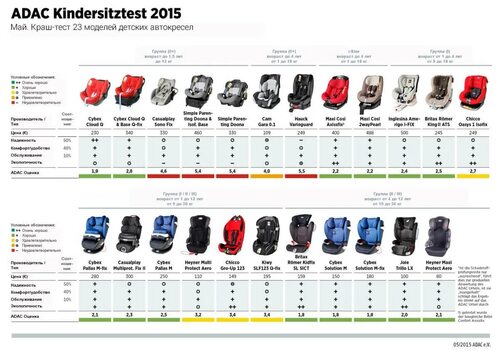 Краштесты детских автокресел таблица 2020 ADAC
