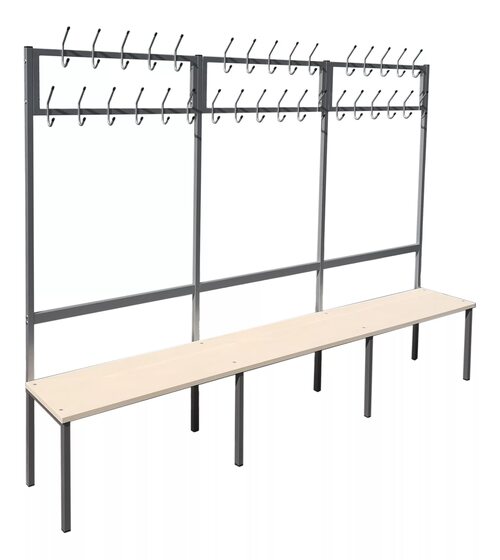 Скамейка для раздевалки с вешалкой и верхней полкой l 1500