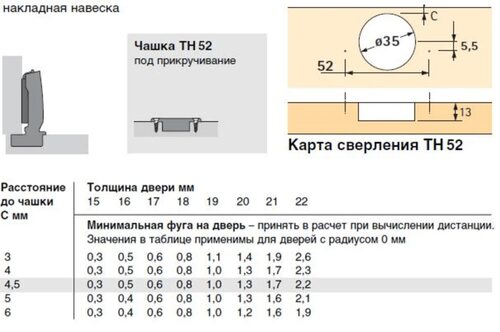 Разметка под мебельные вкладные петли 35 мм вкладные