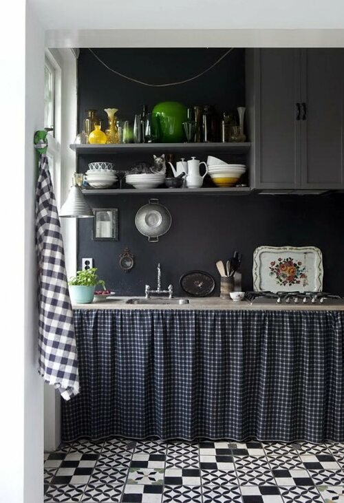2. Визуальное увеличение пространства. Использование шторки вместо дверцы создает впечатление большего пространства и света в кухне.