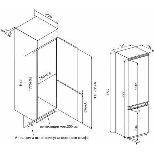 Встраиваемый холодильник Leran bir 2705 NF схема встраивания