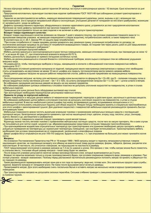 Законодательство о гарантийном сроке для мебели