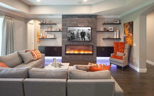 Фотографии гостиной с камином и диваном могут стать отличным источником вдохновения для тех, кто планирует создать уютное пространство в своем доме. Разнообразие дизайнерских решений позволяет выбрать идеи, которые подойдут именно для вашего интерьера.