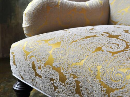 Фотографии ниже демонстрируют разнообразие дизайнов и возможности использования ткани для обивки мебели жаккард в различных интерьерах.