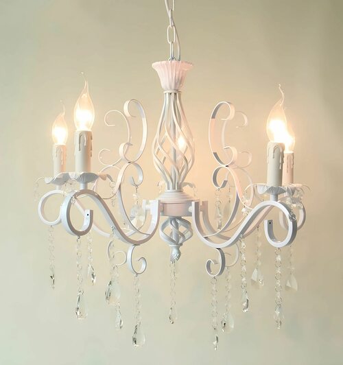 В прованском стиле белые кованые люстры придают интерьеру неповторимый шарм и романтическую атмосферу. Их легкий и воздушный дизайн отлично сочетается с яркими текстильными отделками и натуральными материалами, характерными для прованского стиля.