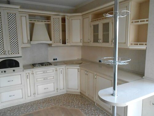Угловая кухня классического стиля с барной стойкой может быть выполнена в различных цветовых решениях. От традиционных деревянных оттенков до современных комбинаций черного и белого, выбор зависит от ваших предпочтений и общего стиля интерьера.