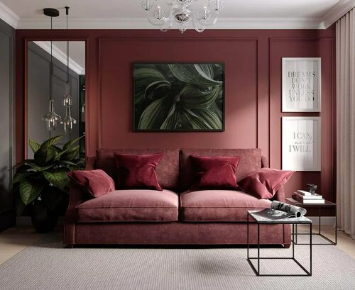 Бордовый цвет часто ассоциируется с роскошью и изысканностью. Он отлично подходит для создания элегантного и уютного интерьера. Бордовые стены или акцентные элементы мебели могут придать комнате теплоту и индивидуальность. Красный и фиолетовый пигменты, из которых состоит бордовый цвет, создают атмосферу уюта и романтики.