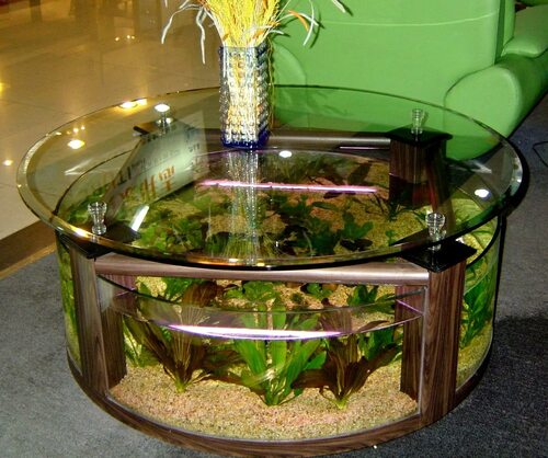 После установки аквариума в столе наступает самый творческий этап - декорирование и обустройство аквариума. Здесь можно проявить свою фантазию, выбрав подходящие растения, камни, коряги и декоративные элементы.