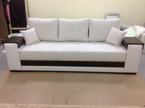 Светлый диван с темными подлокотниками может стать стильным акцентом в вашем интерьере. Этот диван прекрасно сочетает в себе светлые и темные оттенки, создавая элегантный и современный вид.