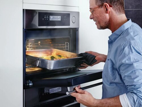 После подготовки ингредиентов приступайте к приготовлению блюда. Установите нужный режим на духовом шкафе Бош, разместите ингредиенты внутри и следите за процессом приготовления.
