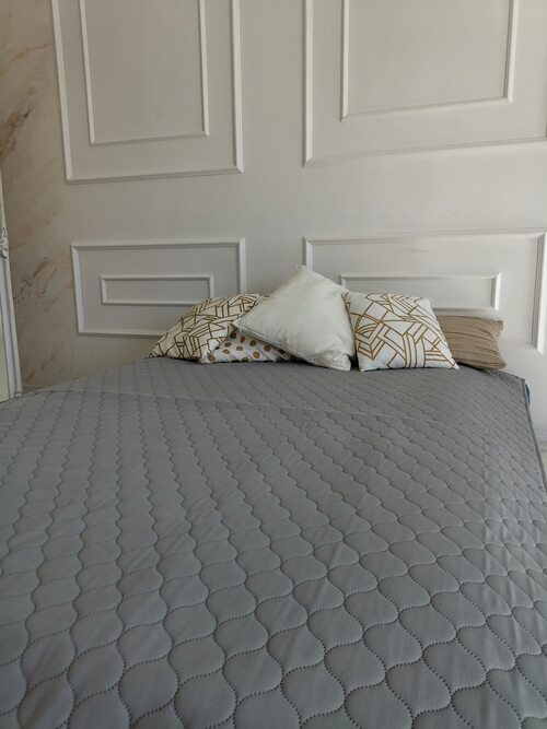 Водоотталкивающее покрывало на кровать - это удобный и практичный элемент декора спальни. Оно обладает специальной пропиткой, которая отталкивает влагу, предотвращая попадание жидкости на матрас и постельное белье. Такое покрывало идеально подходит для использования в семьях с детьми и домашними животными, а также в случае частого попадания жидкости на кровать.