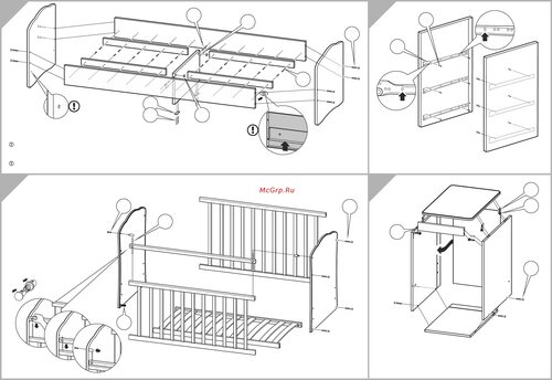 После сборки каркаса установите боковые бортики кровати. Обычно это требует некоторой силы, поэтому будьте осторожны и следуйте инструкции.