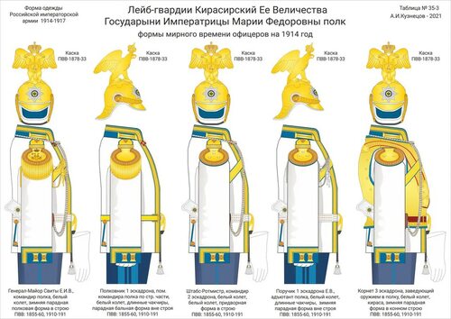 Униформа кирасиров полка отличалась роскошью и красотой. Кирасиры были облачены в ярко-красные мундиры, украшенные золотыми нашивками и эполетами. Их головные уборы, сабли и лошади также вызывали восхищение и уважение.