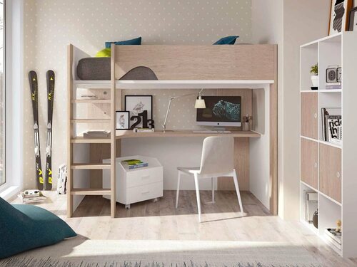 Двухъярусная кровать с письменным столом предлагает удобное размещение для двух детей, экономя при этом пространство в комнате. Верхний ярус кровати обеспечивает уютное спальное место, а нижний уровень можно использовать как рабочее место с письменным столом. Это идеальное решение для детей школьного возраста, которым необходимо комфортное место для занятий и отдыха.