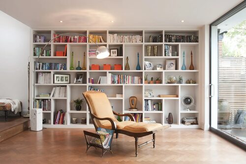 Открытые полки на всю стену могут быть использованы как в домашнем интерьере, так и в офисном пространстве. В домашнем интерьере они могут служить для хранения книг, декоративных предметов, посуды, растений и других вещей. В офисе открытые полки могут стать местом для хранения документов, канцелярских принадлежностей и других необходимых предметов.