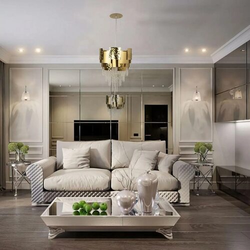 В статье представлены разнообразные идеи использования современных классических люстр в интерьере гостиной. Они могут стать главным акцентом в оформлении пространства, добавляя величественность и элегантность.