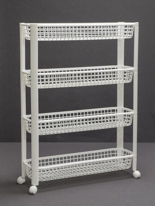 Этажерка с четырьмя полками - отличное решение для компактного хранения вещей. Сочетание узкого дизайна и функциональности делает эту модель популярной в интерьерном дизайне.
