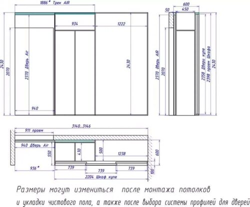 1. Измерьте высоту потолка в помещении, где будет установлен шкаф купе. Учтите, что двери должны открываться свободно, без столкновения с потолком.