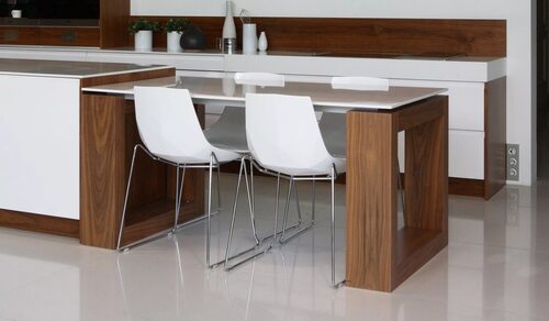 Обеденные столы буквой \"п\" представлены в широком ассортименте. Они могут быть выполнены из различных материалов – от натурального дерева до стекла и металла. Также существует множество вариаций по цвету и отделке, что позволяет подобрать стол под любой интерьер.