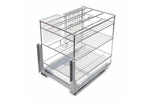 Выдвижные корзины для кухни 400 мм позволяют удобно хранить посуду, продукты и кухонные принадлежности. Благодаря выдвижному механизму, они обеспечивают легкий доступ к содержимому шкафа, что делает использование кухонных принадлежностей еще более удобным.