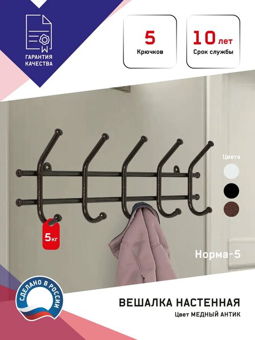 Вешалка настенная норма 5 - это удобное и функциональное решение для вашего интерьера. Сочетание стильного дизайна и практичности делает эту вешалку отличным выбором для любого помещения.