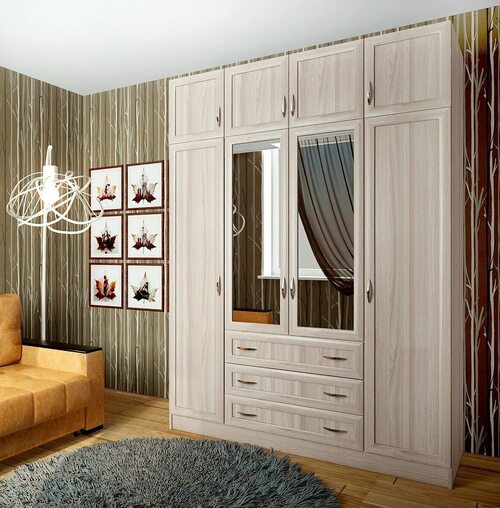 Шкаф изготовлен из МДФ и оснащен четырьмя распашными дверцами. В комплекте имеется антресоль, обеспечивающая удобное размещение мелких предметов. Шкаф представлен в различных цветовых вариантах, что позволяет подобрать подходящий вариант для любого интерьера.