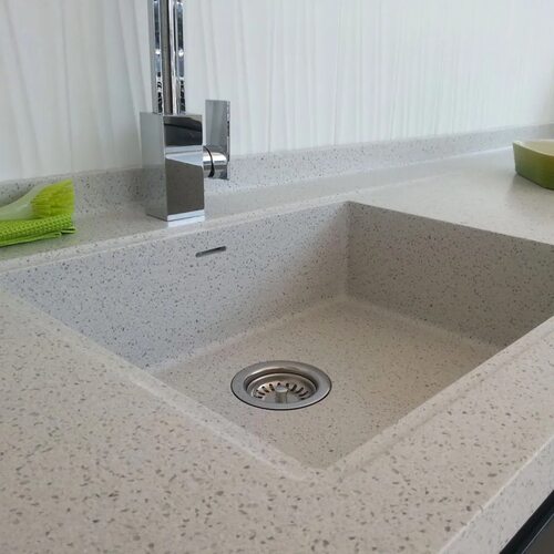 Фотографии столешниц из искусственного камня с литыми мойками помогут вам визуализировать, как эти изделия будут смотреться в различных стилях кухонь, от классических до современных.