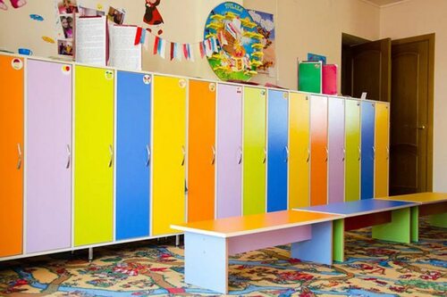 Шкафы для раздевалок могут быть выполнены в ярких цветах с игровыми элементами, что способствует созданию уютной и комфортной атмосферы для детей. Важно также обеспечить удобство использования шкафов, чтобы дети могли самостоятельно размещать и находить свои вещи.