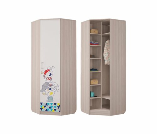 Шкаф Адель оборудован различными отделениями, вешалками, ящиками и полками, что позволяет эффективно организовать хранение одежды и белья. Его угловая конструкция позволяет максимально использовать пространство в комнате, не занимая лишнюю площадь.