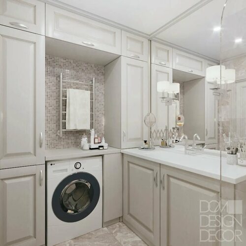 Шкаф под стиральную машину в классическом стиле должен сочетать в себе функциональность и эстетику. Вариантов его оформления может быть множество, и выбор зависит от общего стиля ванной комнаты и ваших предпочтений.