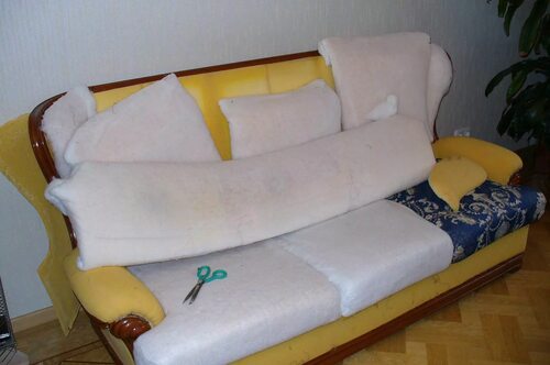 Следующим этапом является непосредственно перетяжка мебели новой тканью. Мы предоставляем подробные фотографии процесса перетяжки, чтобы вы могли увидеть, как правильно натягивать ткань и фиксировать ее на мебели.