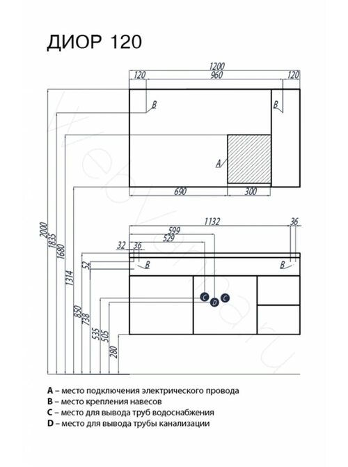 Тумба с раковиной Aquaton Мадрид 120 м 2 ящика белый