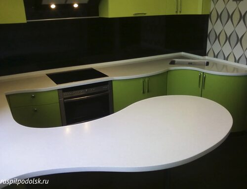 Фигурная столешница может быть выполнена из различных материалов, таких как мрамор, гранит, искусственный камень или дерево. Этот элемент кухонного интерьера может иметь различные формы и узоры, добавляя оригинальности и индивидуальности кухонному пространству. На фотографиях представлены разнообразные варианты дизайна кухонь с фигурной столешницей, от классических до современных, от простых до роскошных.