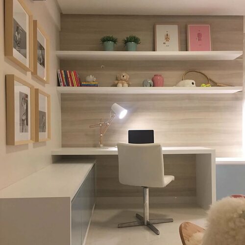 5. Полки с возможностью перестановки. Используйте полки с возможностью перестановки, чтобы легко изменять композицию и функциональность рабочего пространства в детской комнате.