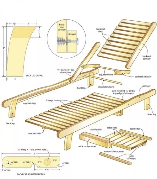 \"Шезлонг из реек чертежи\" (в статье много фото)